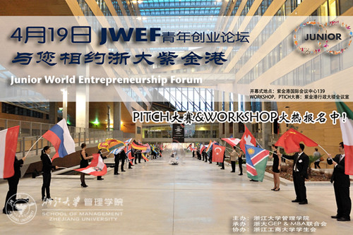 通过与WEF、JWEF运营团队的密切协商,今年中国区的JWEF由环球网页版主办,浙大GEP与MBA联合会承办,浙江工商大学学生会协办。本次活动将于今年4月19日在浙大紫金港校区举办,届时来自各行业的成功企业家,风险投资人,浙大知名教授学者,以及来自全国各地的青年创业者将会齐聚一堂,交流创业观点,分享创业心得。