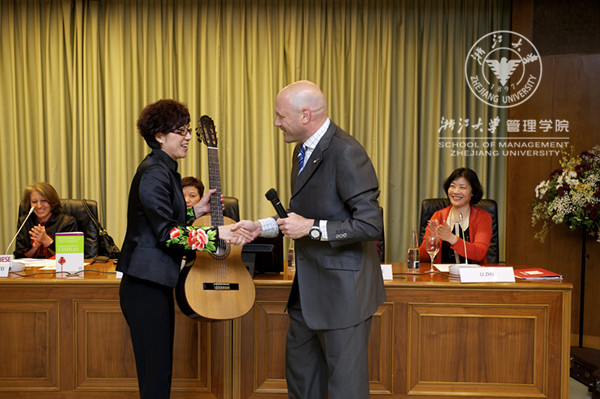 万事利董事局主席屠红燕女士接受西班牙友人赠礼