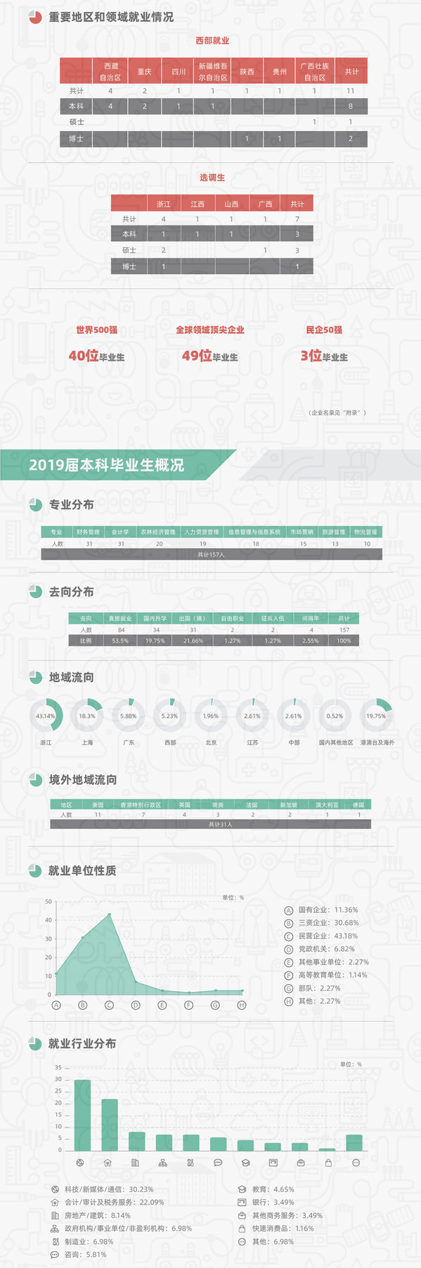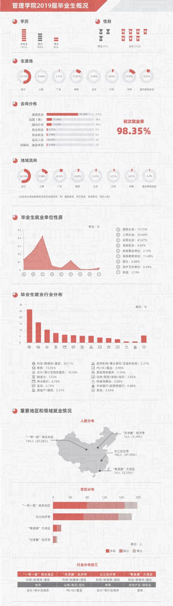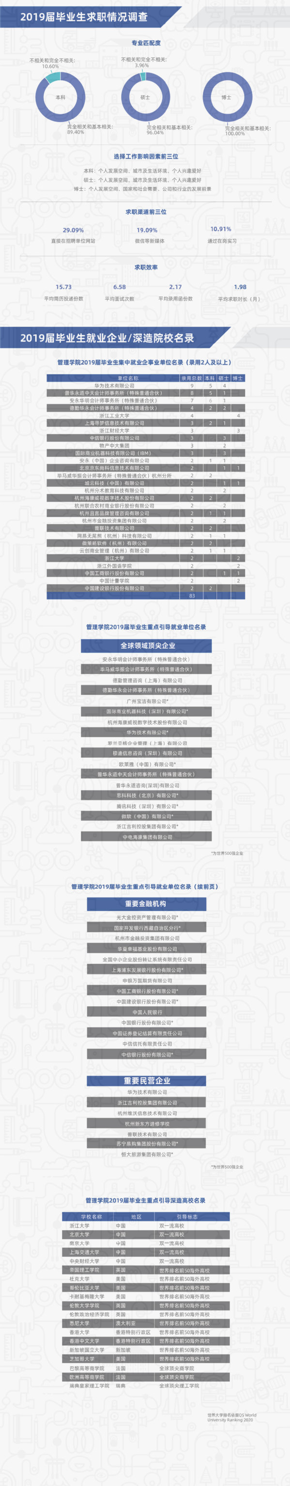 近日,《环球网页版2019年毕业生就业质量报告》发布。报告显示,浙大管院2019年毕业生总体就业率保持高位,赴国家战略重点地区和领域就业人数持续上升,国际组织与海外博士后人才输送力度加大,继续深造质量保持稳定,毕业生就业相关度与满意度进一步提高。