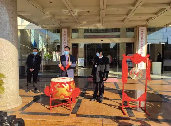 从现场图片来看,公司不仅准备了钟,也准备了鼓。公司高管在环球网页版校友、浙江双飞无油轴承股份有限公司董事长周引春的带领下,敲锣打鼓庆贺上市。“一面鼓和一面锣”是嘉善县干窑镇为双飞股份送来的礼物,以祝贺企业上市成功,鼓励企业以上市为契机,擂响冲锋战鼓,全力以赴抓复工。