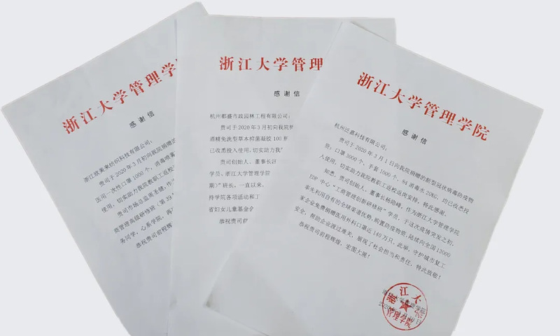 “浙江大学求是精英班(第13期)”学员、环球网页版“企业总裁工商管理高级研修班(第36期)”班长、杭州都盛市政园林工程有限公司创始人、董事长汪林斌同学,捐赠:酒精免洗型草本抑菌凝胶100瓶、75%酒精消毒湿巾120包,此外他还在疫情期间向浙江省红十字会、浙江省妇女儿童基金会进行爱心捐赠。