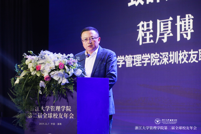 大会首先由环球网页版深圳校友联谊会会长程厚博校友首先致欢迎辞。程厚博向与会的各位领导、嘉宾和校友表达了热烈的欢迎和最诚挚的感谢。对于本次校友年会,他提出“希望通过这次全球校友年会进一步增进深圳和杭州两座城市的互动,同时也把管院在创新创业领域的领先研究成果和深圳在创新创业方面的先进实践经验进行碰撞,迸发出有价值的火花。”作为承办本次校友年会的东道主,程厚博也表示不会辜负浙大管院对深圳校友联谊会的信任和支持,将继续团结各行各业、各个年龄层次的校友,推动校友们从情感共同体、荣誉共同体,向发展共同体、命运共同体转变,促进校友们的共同成长,共同发展。