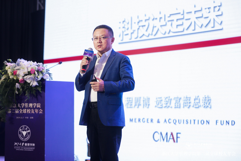 紧接着,深圳市远致富海投资有限公司总裁、深圳市东方富海投资管理有限公司创始人&副董事长程厚博校友,结合自己数十年的投资从业经历、国际及国家经济发展的客观规律与宏观形势,系统性地回顾了多次工业革命兴起与发展的历程,并得出了自己的见解和观点,即他演讲的主题——《科技决定未来》。