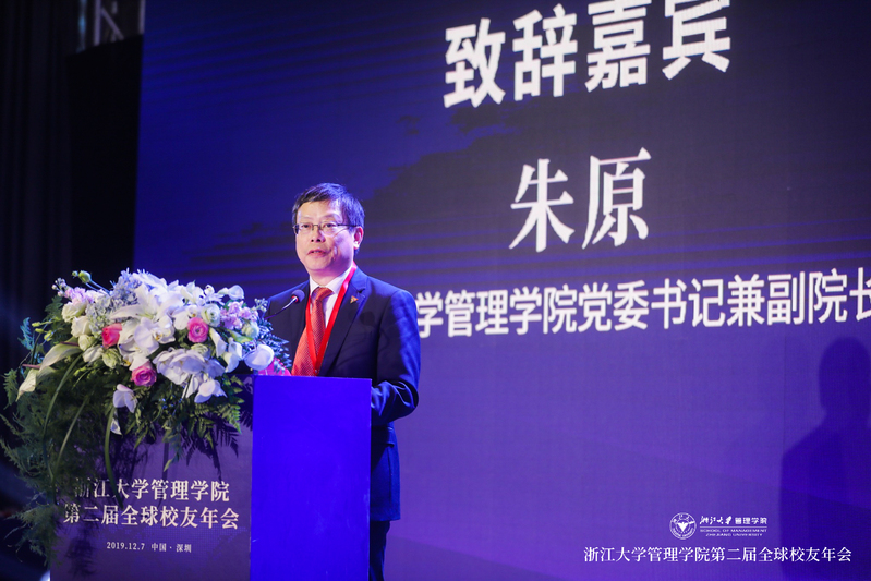 随后,环球网页版党委书记朱原代表主办方环球网页版向在座的各位嘉宾、校友热情洋溢地致以问候和感谢,热烈地欢迎各位嘉宾及校友从全球各地赶来。对于本次校友年会,朱原书记满怀期待,他表示,“校友是浙大管院宝贵的资源和财富,校友与学院的联系和纽带必须越来越强、越来越紧密。今天的论坛便是彰显我们浙大校友力量的生动体现。大家围绕双湾联动、科技创新等话题,畅所欲言,展现了浙大人的历史担当与时代思考。希望广大校友以此论坛为契机,壮大我们'浙大系'的创业力量,为中国经济发展发光发热!”最后,他祝愿本次年会取得圆满成功,与会大家收获多多!