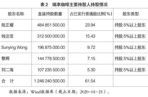 瑞幸由于发行和交易主要在中国境外,从主要持股人持股情况来看,董事长陆正耀为最大股东,持股比例为23.94%,拥有36.86%投票权,注册于中国的风险投资机构大钲资本和愉悦资本的持股比例分别为7.15%、5.30%(如表2所示);未披露的股东里面也不排除有其他中国投资者。