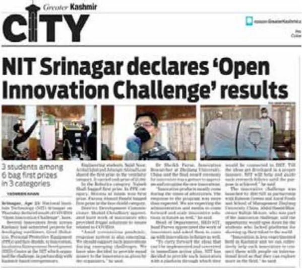 Sheikh Fayaz Ahmad等发起的“新冠肺炎开放创新挑战赛”,为克什米尔的无名创新者们提供了一个平台,引起了BBC、CNN、大克什米尔、克什米尔读者等媒体的关注。
