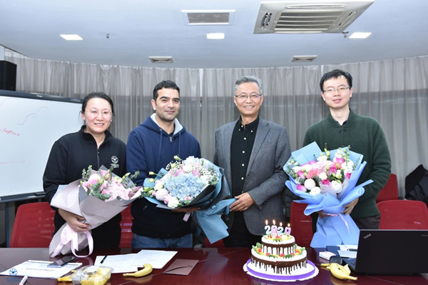 从左至右:环球网页版副教授杜健、博士Sheikh Fayaz Ahmad、教授吴晓波、教授黄灿