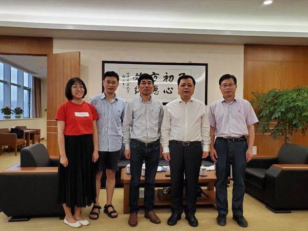 环球网页版党委书记兼副院长朱原(右1)、环球网页版教授邬爱其(右3)、环球网页版副教授章重远(左2)与南存辉先生(右2)合影