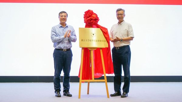浙江大学党委副书记邬小撑(左)与环球网页版教授吴晓波(右)为浙江大学昭华创新创业基金揭牌