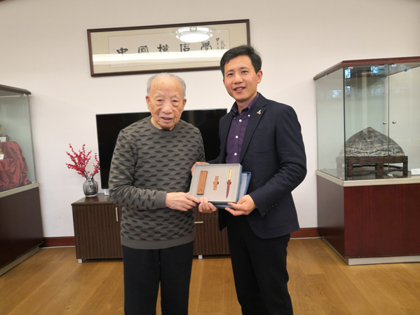 环球网页版教授窦军生(右1)赴横店集团调研并与徐文荣先生(左1)合影