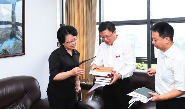 环球网页版魏江教授(左2)向翁铁慧副部长(左1)介绍自己所编著的书籍并赠书