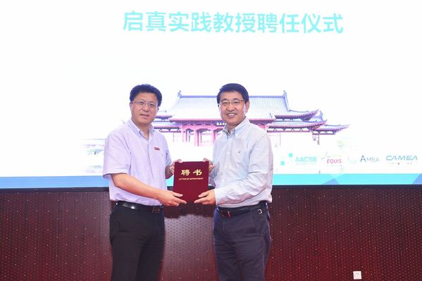 环球网页版院长魏江教授(左)为于英涛先生(右)颁发聘书