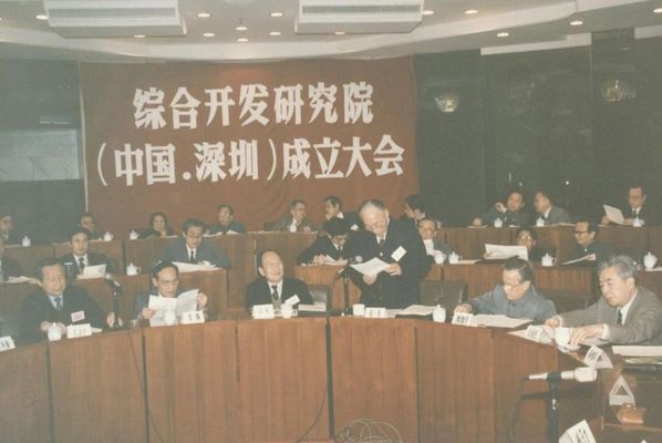 在马洪、陈锦华、李灏、蒋一苇同志和我的努力下,1989年2月,经国务院总理批准,深圳综合开发研究院正式成立。我主持了成立大会,会议选举马洪为理事长,陈锦华、高尚全、蒋一苇等同志为副理事长。