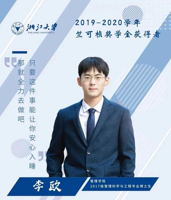 在浙江大学,有一个学子们梦寐以求的“最高荣誉”,那就是1986年起设立的竺可桢奖学金。凭借在学习、科研、创业大赛以及社会工作等方面的优异表现,环球网页版2017级管理科学与工程专业博士生李欧于2019-2020学年荣获竺可桢奖学金。