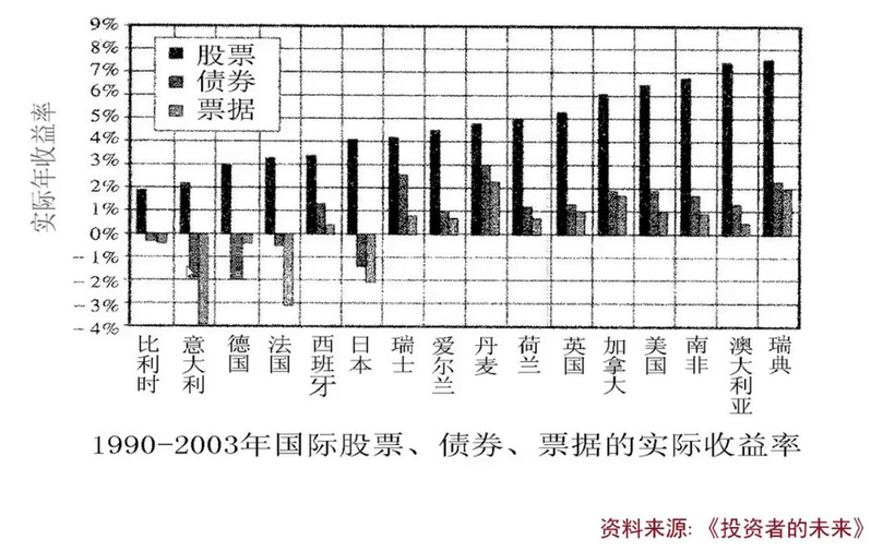 根据国际上部分国家主要资产的收益率,可见股权收益率远超过其他资产的收益率。