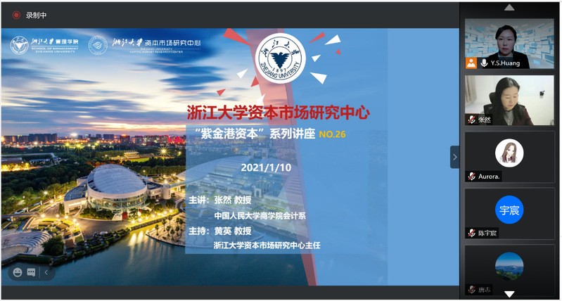 2021年1月10日上午,浙江大学资本市场研究中心“紫金港资本”系列讲座NO.26以线上讲座的形式进行。中国人民大学商学院会计系张然教授为观众们分享了主题为“基本面量化投资”的精彩讲座。此次讲座由浙江大学资本市场研究中心主任黄英教授主持。会计学、金融工程、软件工程、计算机等专业的国内外高校师生,以及银行、证券、投资、电子商务等行业人士,合计200余名观众报名参与了本次讲座。