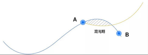 大家注意看,两条曲线之间有一个交汇,这个时期叫混沌期,又称为机会窗口。