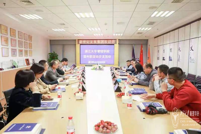 随后,校友一行在新世纪发展集团会议室举行座谈会,会上,谢炳超会长发出了关于浙大管院新大楼树木捐赠活动——“回赠母校一棵树”的倡议,得到校友们的积极回应。