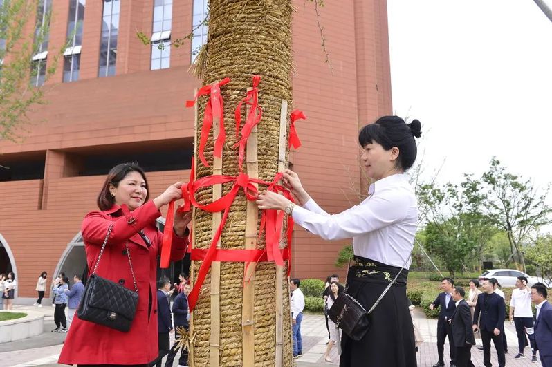 在捐赠仪式正式开场前,校友们纷纷写下对母院的祝福,然后将祝福红丝带系在所赠之树上,共同祈愿母院未来越来越好,求是创新,树我邦国。