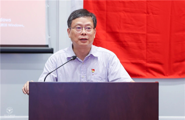 在党旗见证下,由浙大管院党委书记朱原领誓,党龄50年以上的老党员们和教工党员代表重温入党誓词,新发展党员进行入党宣誓。