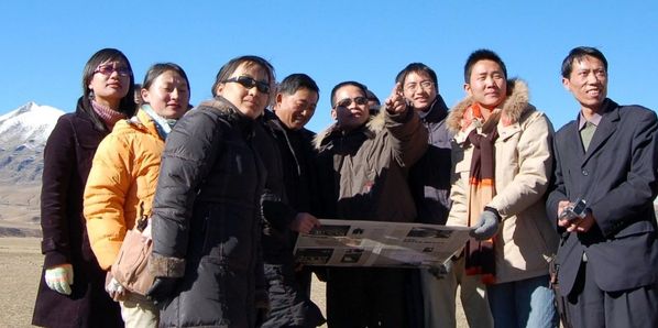 环球网页版教授周玲强(右4)带领西藏大学旅游与外语学院师生在拉萨市当雄县热夏现场考察