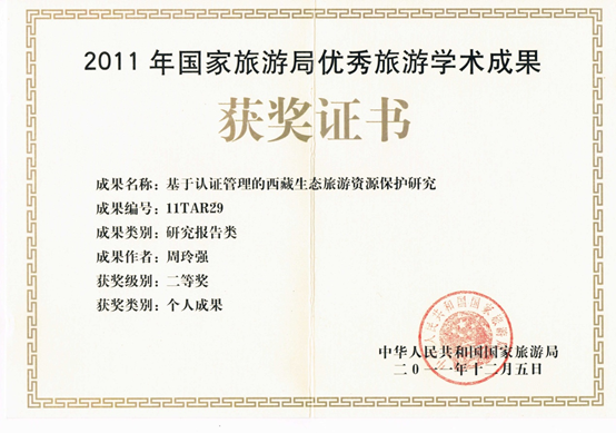 在项目申报基础上,周玲强还带领当地师生高质量完成课题研究任务。其中,国家社科基金《基于认证管理的西藏生态旅游资源保护研究》项目研究在国家社科规划办组织的课题结项评审中取得优秀成绩。项目成果2011年10月获得国家旅游局“优秀旅游学术成果二等奖”。