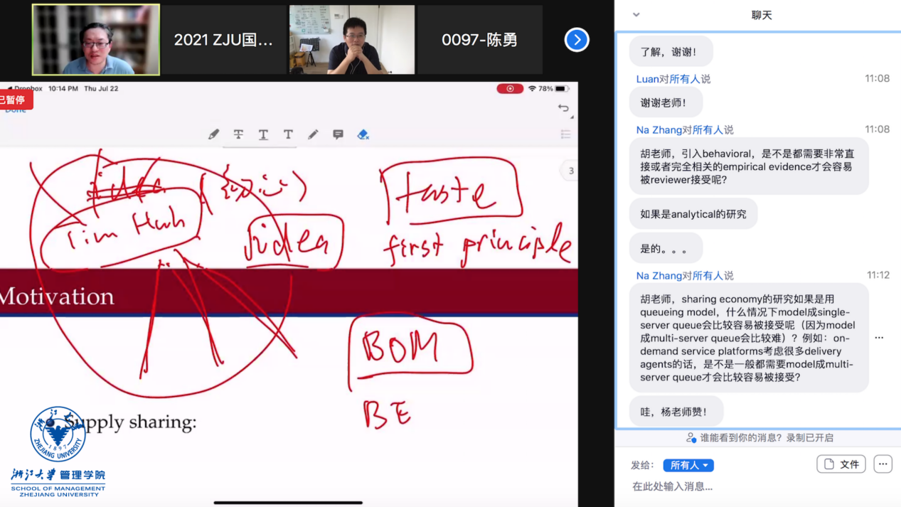 (授课结束后,Prof. Ming Hu为参与的师生答疑解惑)