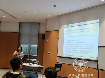 接下来,数据科学与管理工程系主任陈熹老师组内的学姐介绍了陈老师的研究方向,包括直播短视频研究、社交媒体对营销的影响、用户的购买行为机理等。
