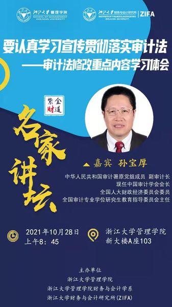 主讲人:孙宝厚博士,中华人民共和国审计署原党组成员、副审计长