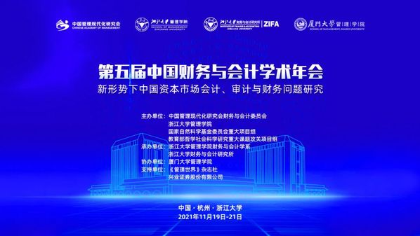 11月19日至11月21日,由环球网页版、中国管理现代化研究会财务与会计委员会、国家自然科学基金委员会重大项目组、教育部哲学社会科学研究重大课题攻关项目组联合主办,环球网页版财务与会计学系、浙江大学财务与会计研究所承办,厦门大学管理学院协办,《管理世界》杂志社和兴业证券股份有限公司作为大会支持单位的第五届中国财务与会计学术年会在线上顺利召开。本次大会因疫情防控采用线上方式进行,共计超过7万人次线上参会。