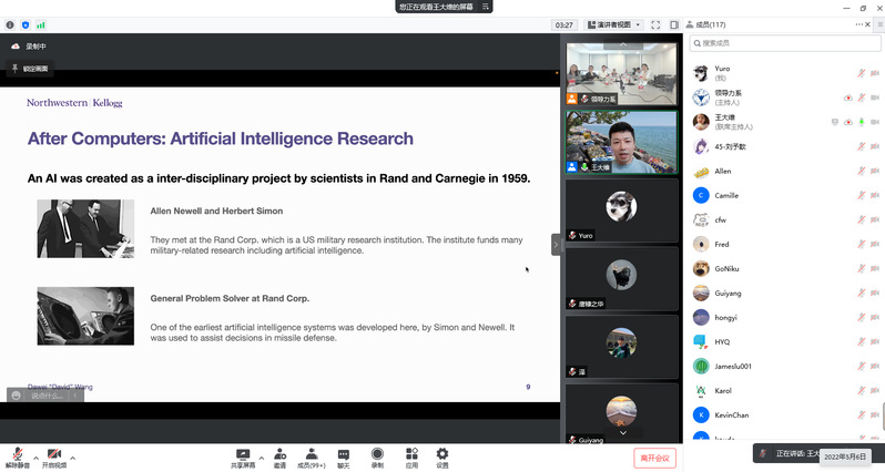 最后,王大维博士对自己的研究做了总结并提出展望。他指出,尽管人们大多认为AI是客观、理性的,但实际上AI工具的基本训练框架仍然带有一定的人类主观性,而能够用于大数据研究的AI分析工具非常多样,针对同一问题也可能得出多样的结论,但行为理论是支撑研究者选择合适AI工具的重要基础。同时,他也指出,研究者不要盲从AI得出的研究结论,人类与AI各有所长,研究者所要做的是尽可能多地接触多样化的思想,并做科学恰当的整合以更接近真相。