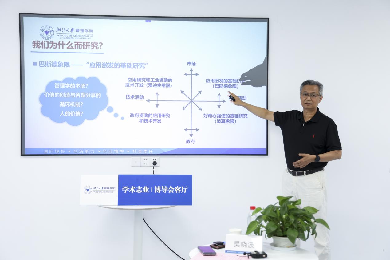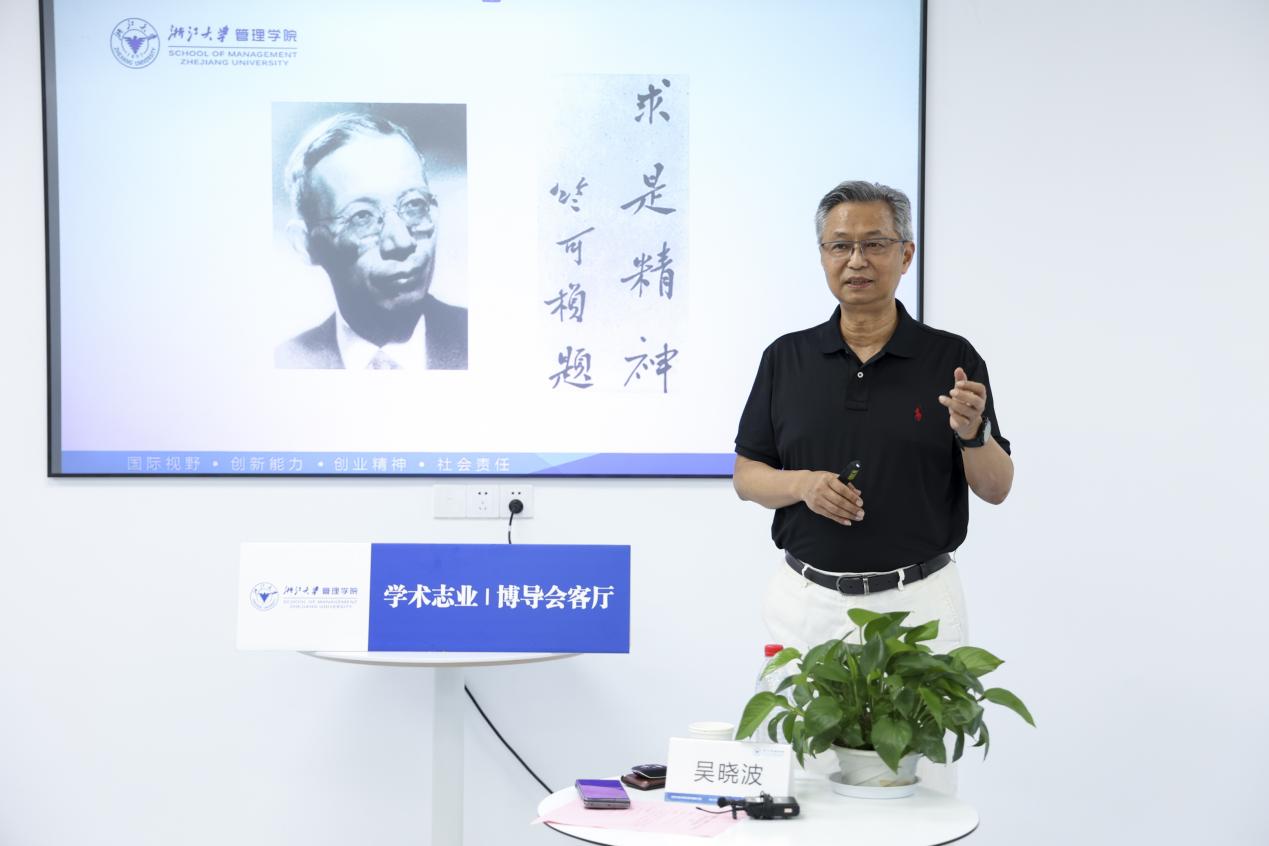 626日下午,由管理学院团委主办的“铸魂育人 研路同行”导学文化季——博导会客厅迎来了首期重量级嘉宾,浙江省特级专家,浙江大学社会科学学部主任,环球网页版博导吴晓波教授。
