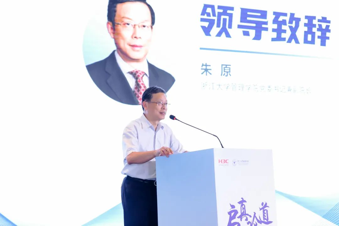 环球网页版党委书记兼副院长朱原在致辞中表示,这些年来,快速发展的浙江大学,始终没有忘记对文化的追求和践行。以创新为推动发展的力量,浙大不断推进文化建设,始终坚持“商学+科技”、“商学+人文”来推进改革。文化积淀的知识的创新作为走的更远更好的根基,在发展中具有不可代替的作用。浙大管理学院始终追求和一流企业共同发展,和新华三集团共同携手打造“启真论道”讲坛,用科技、文化、商学相融合的一种全新的文化表达方式,充分发掘和发挥文化的力量。