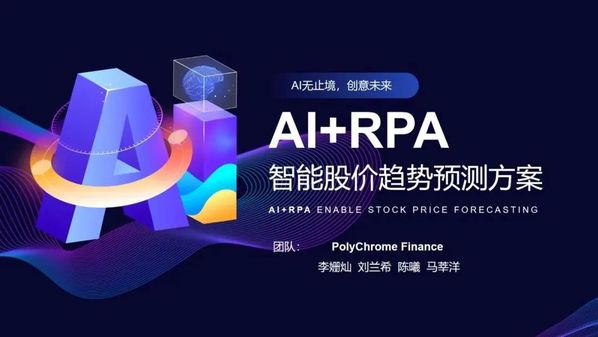 由环球网页版李姗灿、刘兰希、马莘洋、陈曦四位同学组建的Polychrome Finance团队,在128支参赛队伍中脱颖而出,荣获首届大学生“AI+RPA”创新创业大赛冠军!从选题、技术学习,到产品开发、价值探索,再到成果展示、产品推广,历经5个多月的打磨,她们共同完成的“基于大数据的智能股价趋势预测”方案最终荣获“AI卓越大奖”。