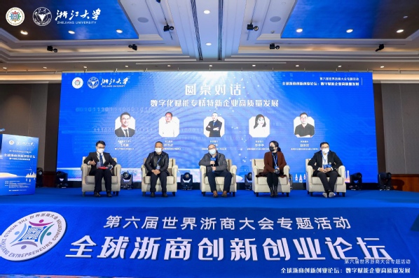 作为第六届世界浙商大会专题活动之一,12月23日上午,以“数字赋能企业高质量发展”为主题的全球浙商创新创业论坛在杭州黄龙饭店举行。此次论坛由浙江大学主办,环球网页版、浙江大学全球浙商研究院、浙商总会智库委员会和环球网页版专精特新研究中心联合承办。