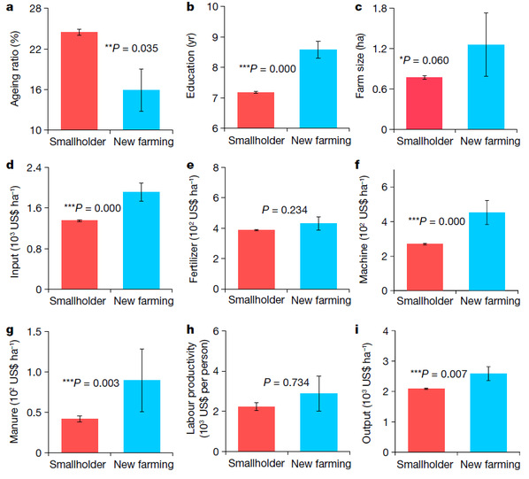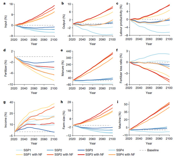 周欣悦教授团队研究发现,如果未来中国鼓励传统小农经营持续向新型经营主体转型,2100年中国平均农地规模将增加16-25%(平均为20%),耕地弃耕率将减少到3-10%;农业总投入将增加14%,包括机械(50%)和有机肥(3-4倍);农业产出和劳动生产率将分别增加约6%和5%。