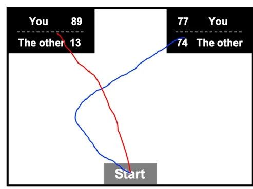 鼠标轨迹数据解析发现,对于具有不同亲社会偏好的人来说,自己收益和他人收益对鼠标移动轨迹的影响大小和开始影响鼠标轨迹的起始时间,是不同的。