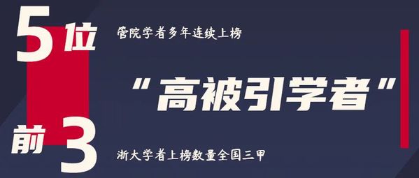 “高被引学者”是指作为第一作者和通讯作者发表论文的被引总次数在本学科所有中国(大陆地区)研究者中处于顶尖水平。入选高被引学者榜单,是对浙大管院学者们的一项认可。他们在各自的研究领域深耕,为学科发展做出贡献,对全国甚至全球学术界都具有极高影响力。