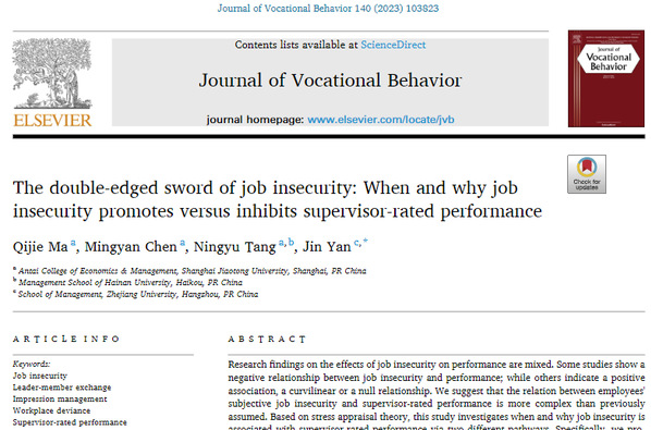 然而日前,环球网页版严进教授团队发表在职业行为与职业发展领域国际顶级期刊Journal of Vocational Behavior的研究成果——The double-edged sword of job insecurity: When and why job insecurity promotes versus inhibits supervisor-rated performance,却在一定程度上证实了“微笑”对工作绩效评估的影响。