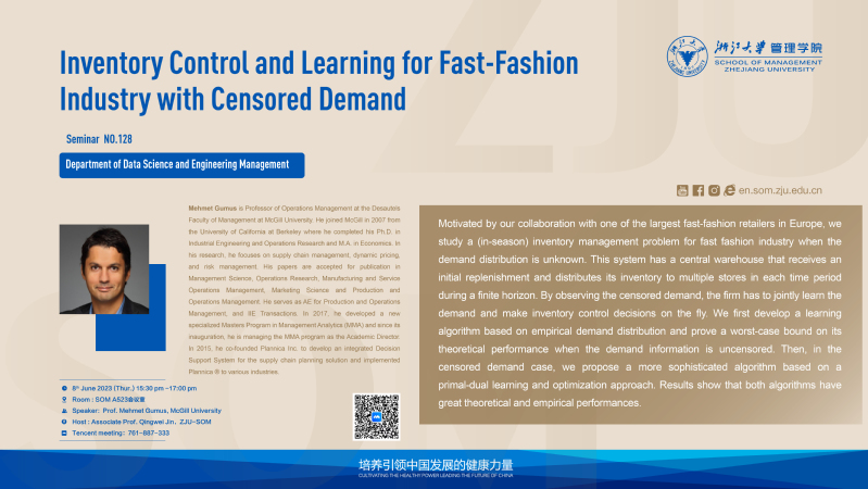【数据科学与管理工程学系学术讲座No.128】Inventory Control and Learning for Fast-Fashion Industry with Censored Demand
