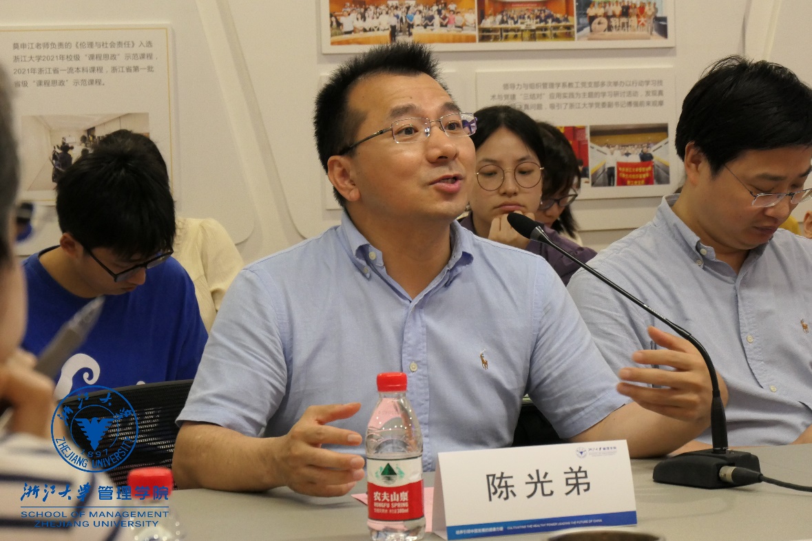 此外,团队中的管理学院学者们还汇报了当前的成果以及对未来研究的思考。邢以群教授总结了老龄化与养老产业研究以及医疗健康产业教学经验,并提出了对新兴医疗技术的商业化推广的研究设想。童昱副教授提出了数据资源化研究的设想。胡琼晶副教授对AI诊疗背景下人机协作过程中的信任形成机制、角色重构机制以及信息交换机制对医疗系统的影响进行了探讨。华中生教授和张政研究员分享了团队在数字化疾病预测和决策方面的成果,并提出基于新技术的疾病管理模式创新设计、医疗健康垂直大模型以及医疗仿生系统设计等未来研究的思考。袁泉副教授和崔政研究员分享了基于竖直医疗服务的诊疗机制设计和基于分级诊疗的医保付费模式设计等研究。