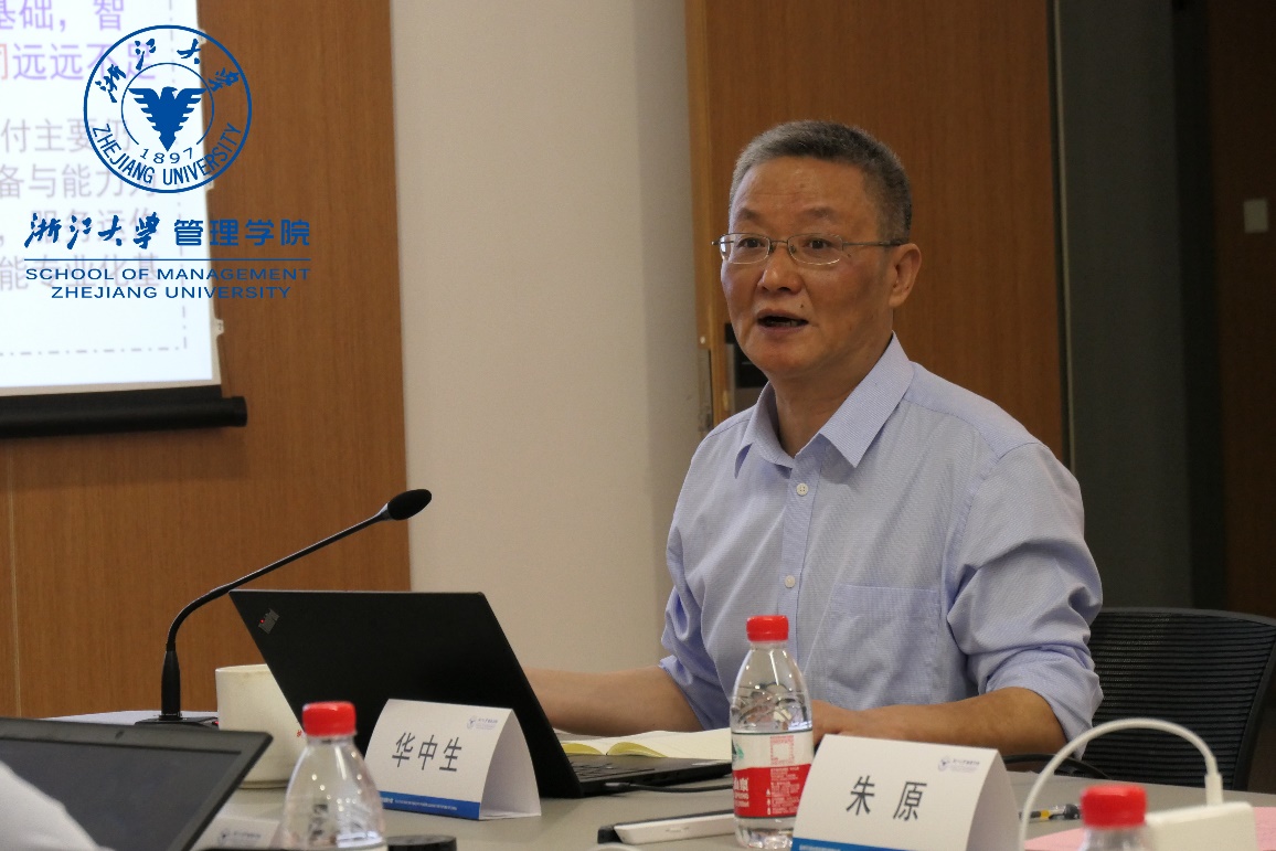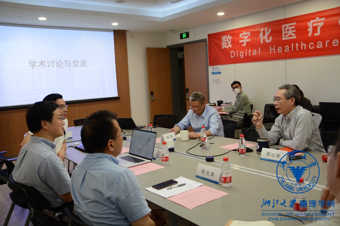 随后,团队领导成员就各自领域的DHM中管理问题分别进行了报告。团队负责人华中生总结指出当前医疗管理存在看病贵看病难、线上医疗重建不重用、医疗数据利用率低、数智人三者关系不明确、公平性与效率矛盾激化等5个问题,这些问题对医疗数据资源化模式设计、人机协同、智能诊疗预测与决策、医疗服务资源配置等方面提出了严峻的挑战。基础医学院副院长杨巍希望基础医学能够为团队提供病理学上的辅助。生物医学工程与仪器科学学院副院长林辉表示医院之间的差距会随着医学仪器的发展而被缩小,未来医院应当从就医、供给、组织模式创新、管理的内容和形式以及决策机制变革、法律法规的完善等方面寻求优势,因此管理在未来医院竞争中的作用会更加凸显。浙江大学健康医疗大数据国家研究院副院长吴健补充了当前人工智能技术在医疗上的应用仅限于理论层面,商业化程度过低的问题。科研院基础研究与海外项目部部长陈光弟认为解决当前医疗中的管理问题不仅需要不同学科之间的信息互通,还需要国际交流。