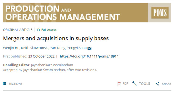 事实上,关于“一级供应商并购对核心企业销售成本的影响”,过去也有学者通过构建概念模型对此展开过研究。很长一段时间里,“正面影响”和“负面影响”两种说法在学术界内并存,导致争论局面出现。而寿涌毅教授团队的这项研究,则创新性地打破了这种争论局面,提出了相对确定性的结论。