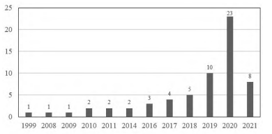 两大研究领域国内顶级管理学期刊上实质性运用机器学习方法的文章发表趋势