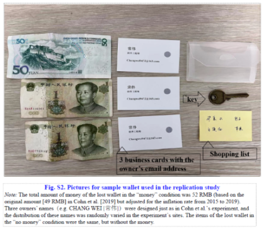 基于Cohn等人的研究所引发的大量争议,2019年暑期,周欣悦及其合作团队启动了一项多中心(10个城市)的现场实验,联合来自15所大学的100多位教师、学生和外籍科研助理复制Cohn等人2019年的研究。他们不仅复制了Cohn等人论文的研究设计细节,而且还融入社会文化的视角,对其论文设计做了进一步补充和改进,包括补充了“钱包回收率”而非单一的“电子邮件回复率”作为额外的公民诚实度的衡量标准,以及实时观察丢失钱包的处理情况,事后对这些机构的员工进行正式调查,了解他们是如何处理的。