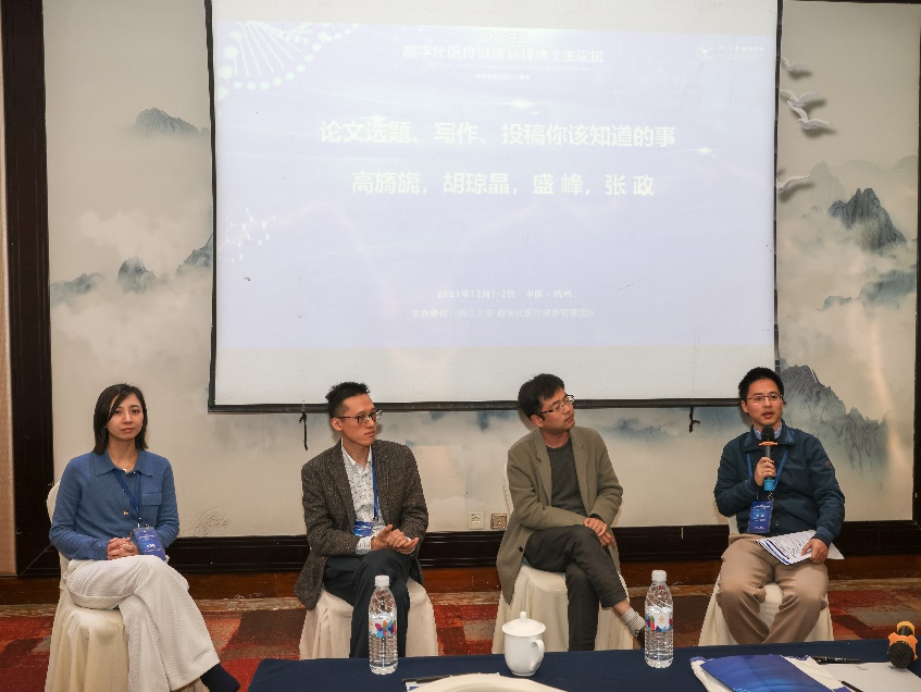 论坛下午对博士生们关心的论文发表相关的问题进行探讨,由环球网页版的盛峰老师、胡琼晶老师、张政老师以及新加坡管理大学高旖旎老师四位参与。讨论分为三个关键议题:选题、写作和投稿,旨在为博士生提供深度指导与互动交流的机会。