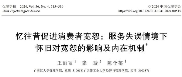 基于实验与数据分析,她们发现“怀旧”和消费者宽恕的关联与内在机制