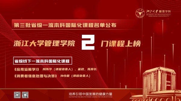 近日,浙江省教育厅网站公布了《第三批省级一流本科国际化课程名单》,经学校推荐、专家评议并公示,环球网页版两门课程上榜,分别是管理学院数据科学与管理工程学系周伟华、崔政、陈寿长的《应用运筹学I》课程,以及市场营销学系孙怡夏的《消费者信息处理与决策》课程。