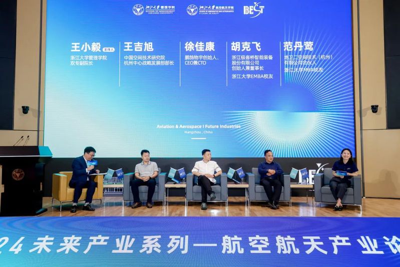 围绕空间技术、低空经济产业化发展的话题,环球网页版专聘副院长王小毅教授,浙江大学MBA校友、地卫二空间技术(杭州)有限公司合伙人范丹莺,浙江大学EMBA校友、浙江极客桥智能装备股份有限公司创始人兼董事长胡克飞,中国空间技术研究院杭州中心战略发展部部长王吉旭,鹏鹄物宇创始人、CEOCTO徐佳康分享了他们在低空经济领域的实践、对产业发展以及产业机遇识别的看法。