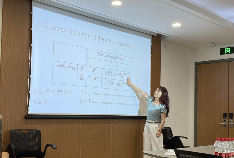 严婷婷教授首先通过“苹果-三星”以及“本田-通用摩托”的合作向大家分享了现实世界中竞争者之间合作创新的实例。同时,她通过对业界采购经理进行访谈了解了企业对竞争者合作创新的看法:有些采购经理不认同,认为这是高风险的;有些则赞同通过这种合作可以共享风险和成本,互相补充知识,利于企业创新发展。从文献角度,严教授分析了现有文献中对供应商选择所考虑的因素,以及讨论了现存文献中竞合关系下的技术管理问题。
